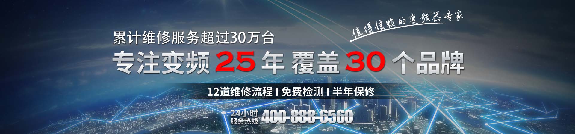 20年專業維修維護變頻器經驗,業務覆蓋丹佛斯、匯川、ABB、西門子、施耐德、安川、臺達等30多個品牌,累計服務量超過20萬臺。